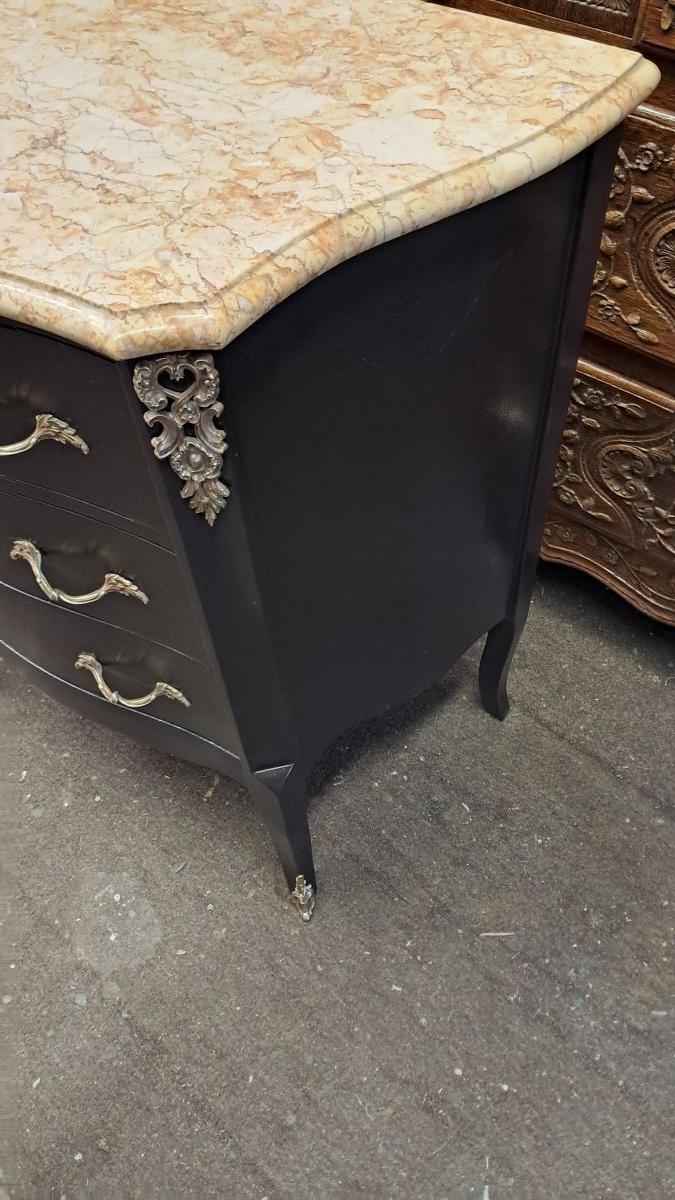Petite commode d'entre-deuxà trois tiroirs début XXe patinée en noir.