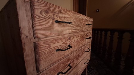 Commode d'esprit brutaliste en sapin à quatre tiroirs.