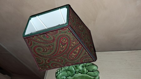 abat-jour pyramide rectangle recouvert d'un ancien chale cachemire