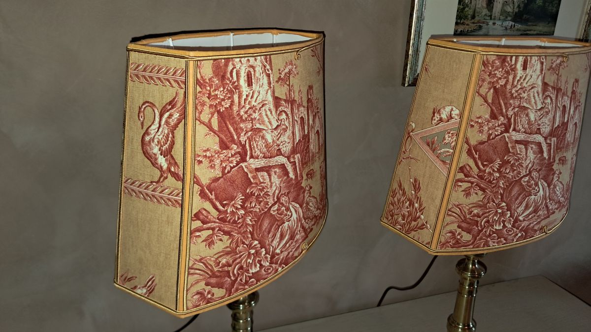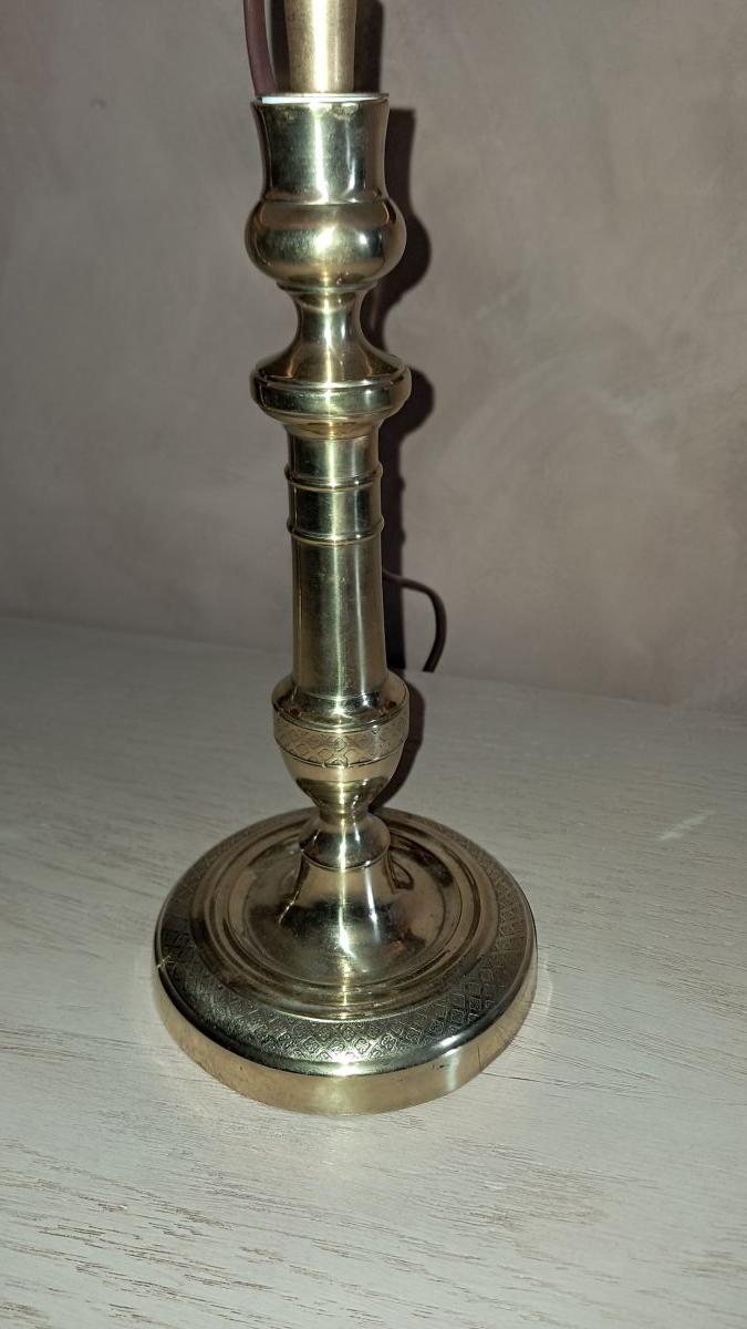 très jolie ciselure de croisillons . de par la hauteur des bougeoirs, cette paire de lampes est idéale sur une commodedans un salon ou sur des chevets dans une chambre.